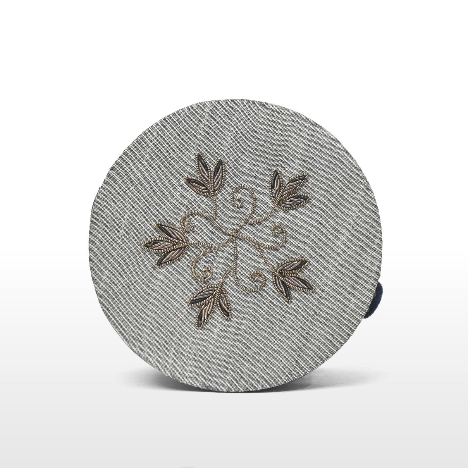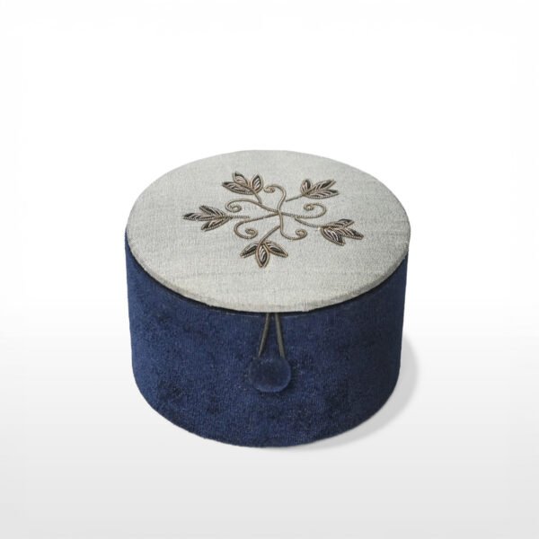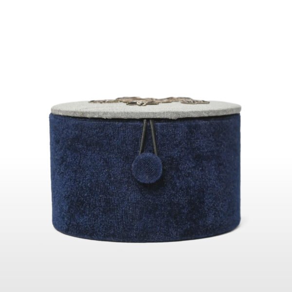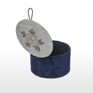 Elevate your gifting experience with our Handmade Blue & Grey Multi-Purpose Silk Evening Gift Box for Women. This exquisite round box is meticulously crafted with luxurious silk and adorned with intricate detailing. Its versatile design makes it perfect for special occasions and as a storage keepsake. The calming shades of blue and grey exude sophistication, while the premium silk adds a touch of opulence. Whether it’s for jewelry, cosmetics, or a cherished gift, this handcrafted box adds a touch of elegance to any setting. Gift it or use it to store your treasures, this box is a testament to fine craftsmanship and timeless beauty.
