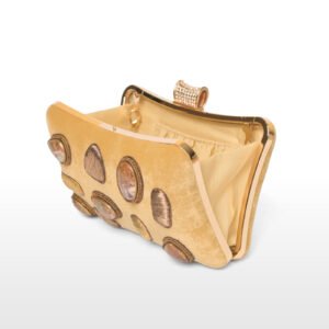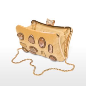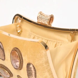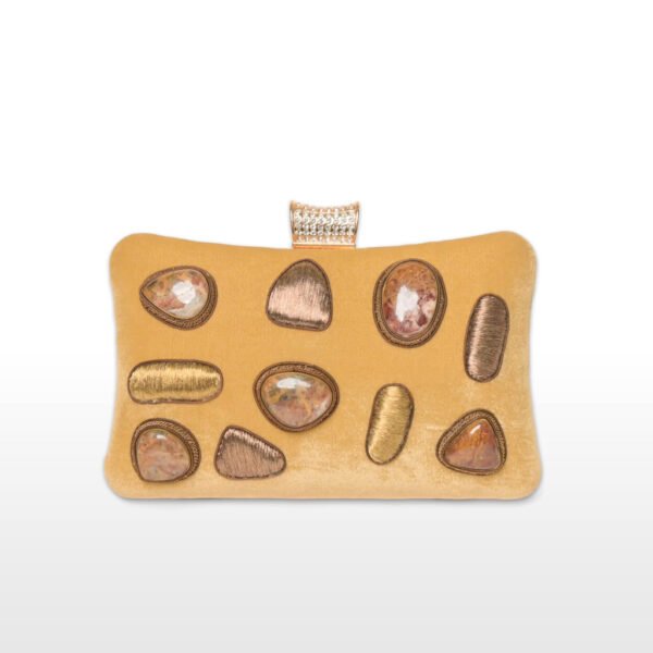 Designed by skilled artisans who have years of experience in handicrafts. This Beige Velvet Hand Clutch is hand-crafted with velvet fabric and embellished with agate stones. If you are looking for a perfect gift for your female loved ones then you can choose this hand clutch and give it to her. The whole body of this hand clutch is made with satin fabric and it has enough room for your essentials. It comes with a metallic chain for your comfort. The finger let mounted on the top is also looking attractive.