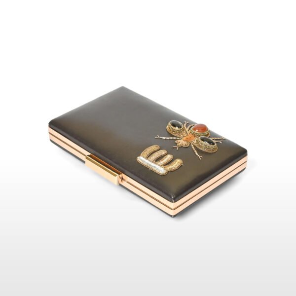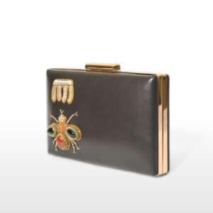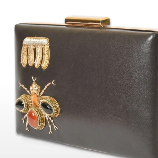 Carry it as a clutch or use the detachable chain to wear it as a crossbody bag; the choice is yours. This exquisite piece not only complements your attire but also reflects your refined taste. Elevate your fashion statement with the “Earthly Elegance: Brown Leather Clutch with Onyx & Carnelian Gemstones” today.