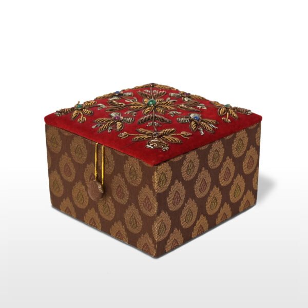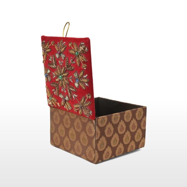Elevate your gifting with our “Earthy Allure” Handmade Brown Multi-Purpose Evening Gift Box. Crafted from exquisite brocade and velvet fabric, this box exudes elegance. Its real charm lies in the embellishment of Green Onyx Beads Gemstones, creating a captivating contrast against the brown backdrop. Perfect for special occasions or as a luxurious gift, this versatile box can hold jewelry, trinkets, or cherished memories. Present your tokens of affection in a package that’s as precious as its contents, making every moment unforgettable.