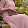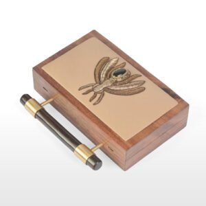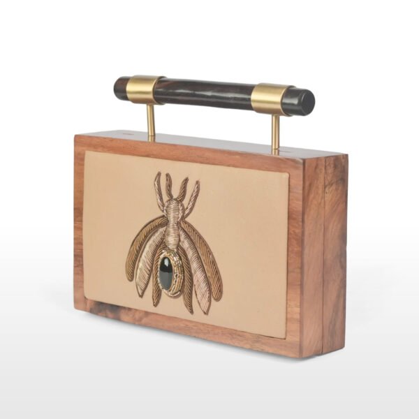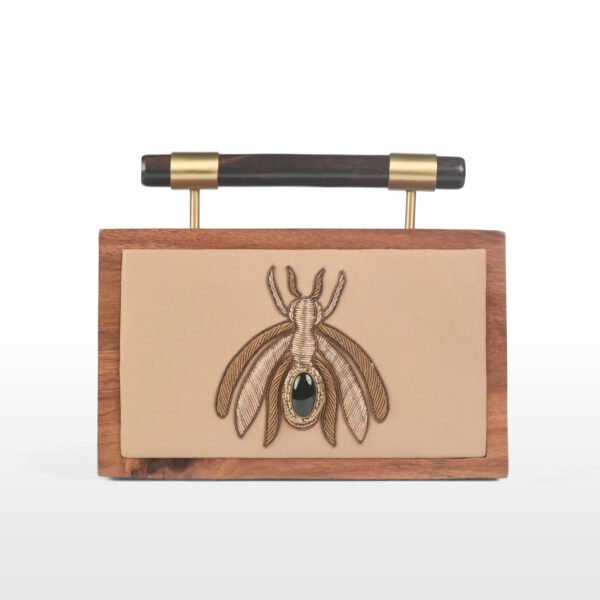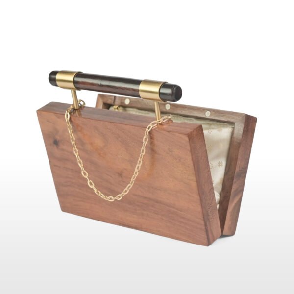 Crafted with meticulous attention to detail, the rectangular wooden frame adds a touch of rustic charm to the clutch’s design. The smooth leather exterior in a classic hue complements the wooden frame, creating a perfect balance of elegance and natural beauty.