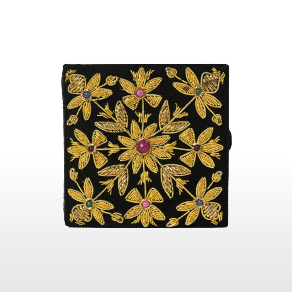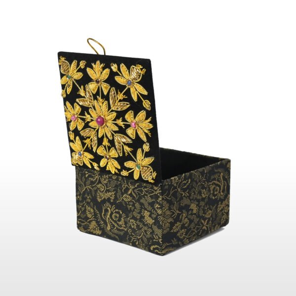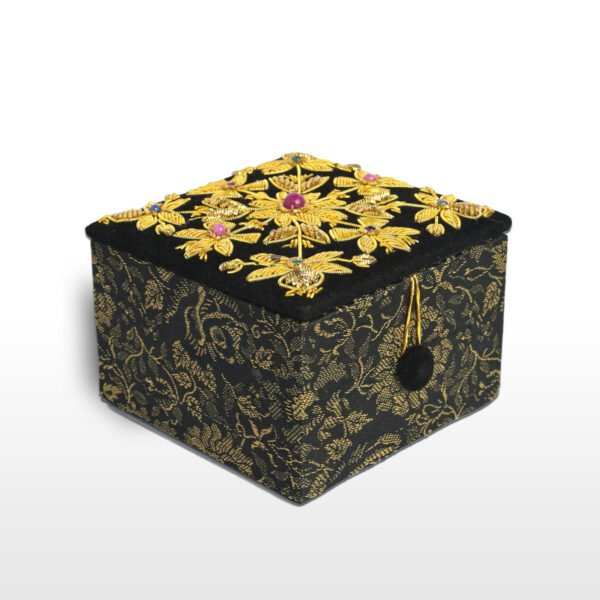 Elevate your gifting with our “Midnight Elegance” Handmade Black Multi-purpose Brocade & Velvet Fabric Evening Gift Box. This square-shaped, versatile box is a stunning blend of sophistication and craftsmanship, perfect for women. Adorned with fiery Red Onyx Bead Gemstones, it exudes timeless charm. Whether it’s for jewelry, trinkets, or a cherished gift, this box adds an exquisite touch. Make your special moments even more memorable with this luxurious, handcrafted masterpiece.