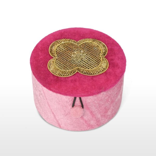 Elevate your gifting game with our Handmade Magenta & Pink Velvet Multi-Purpose Gift Box for Women. This opulent round box is as much a gift as what’s inside. It’s handcrafted with precision and adorned with intricate detailing, making it a cherished keepsake. The rich magenta and pink hues evoke elegance, while the velvet exterior feels luxurious to the touch. This versatile box is perfect for presenting jewelry, cosmetics, or any special tokens of affection. A charming addition to any occasion, it adds a touch of sophistication to your gifting experience.