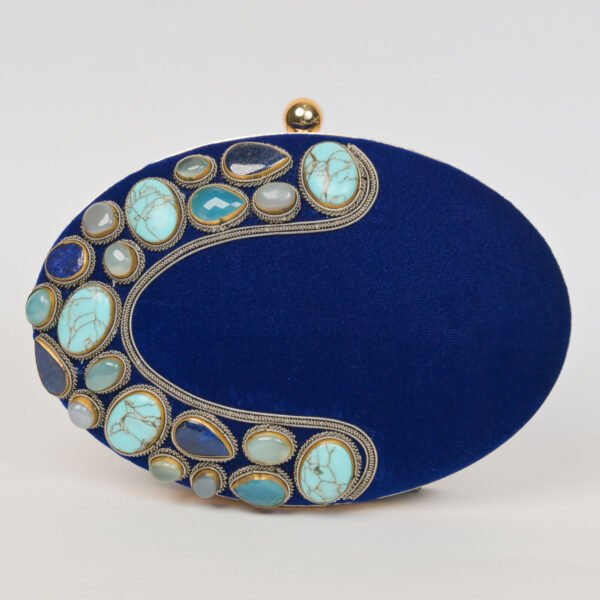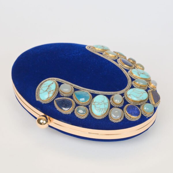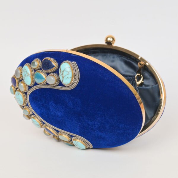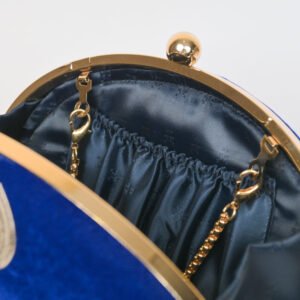 The oval shape offers a unique twist on traditional clutch designs, allowing you to carry your essentials with a touch of elegance. The delicate clasp closure adds a vintage touch, enhancing its timeless appeal.