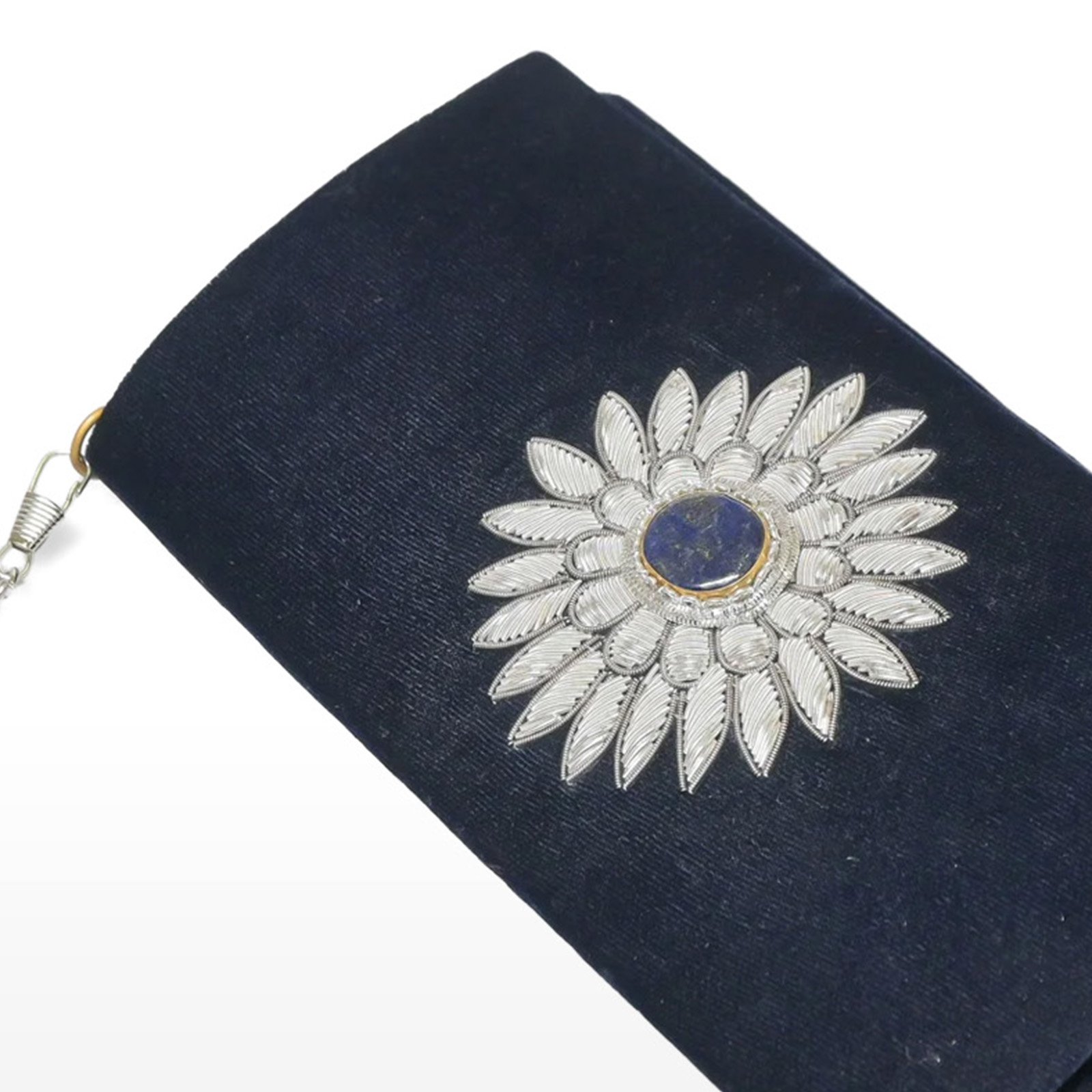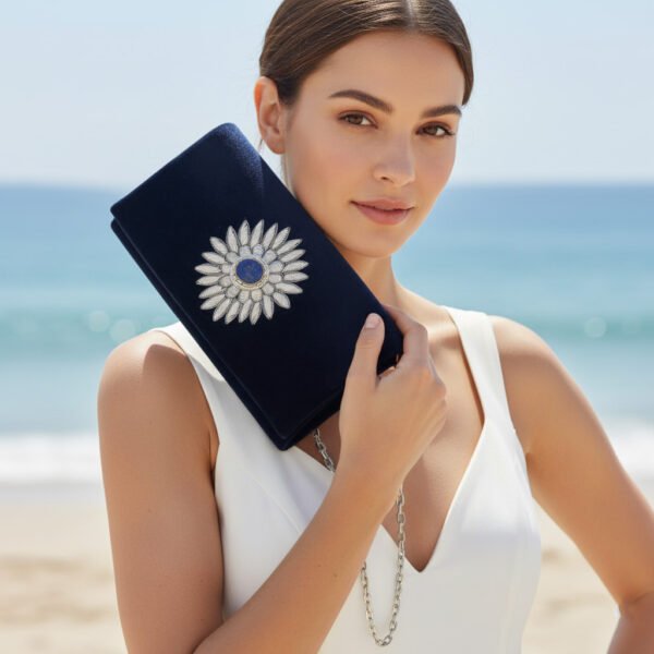Step out with confidence, knowing you’re carrying a piece of art that reflects your impeccable taste. Make the Royal Blue Velvet Book Bag with Lapiz Gemstone your signature accessory and be prepared to turn heads wherever you go.